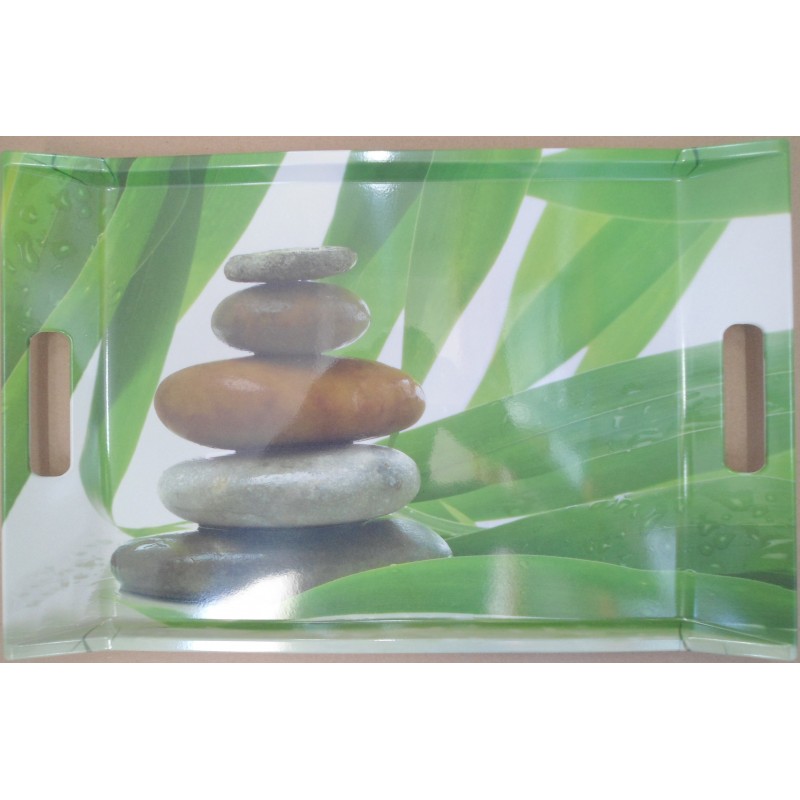 Plateau vitrifié Natura de Delta Facile à porter grâce à ses deux poignées latérales, léger mais très résistant, durable, et lavable très facilement, ne passe pas au micro-ondes. Dimensions: 47x31cm Matière: Plastique