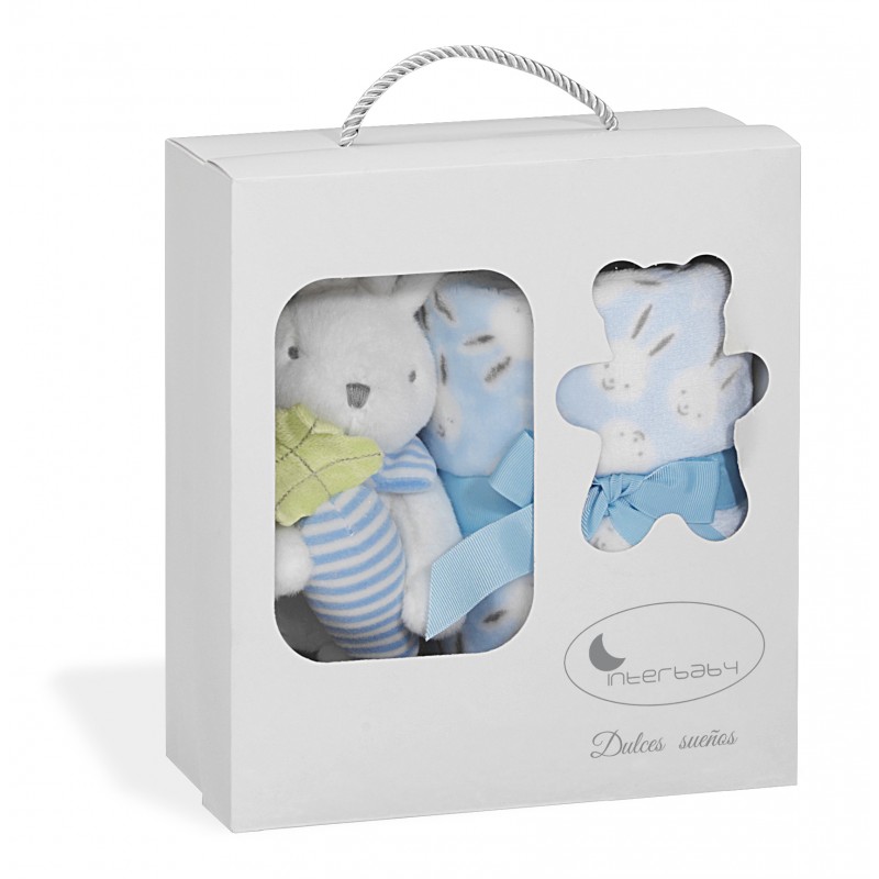 Couverture 80x110 Bleu Conejo zanahoria +Peluche 15 cm de INTERBABY